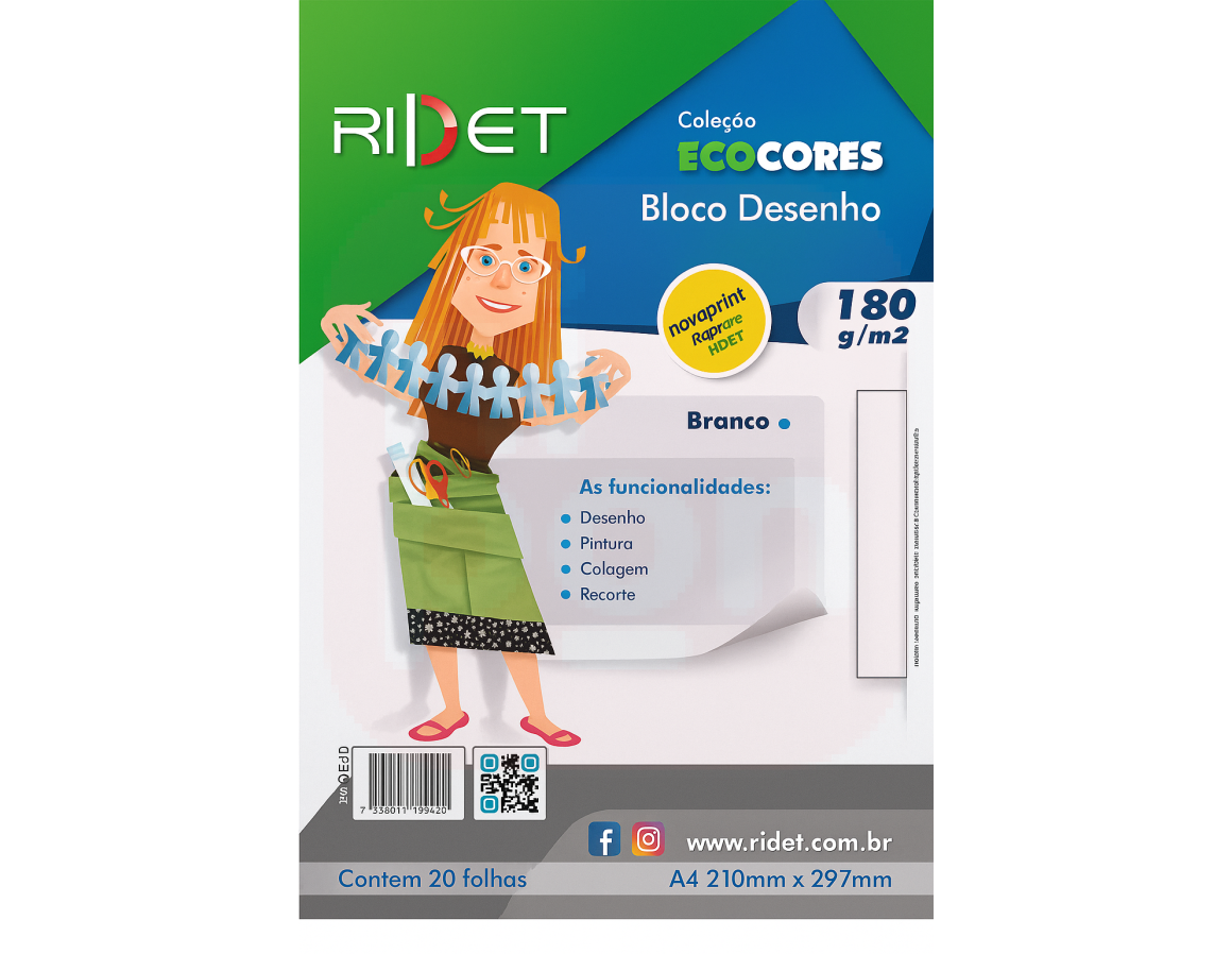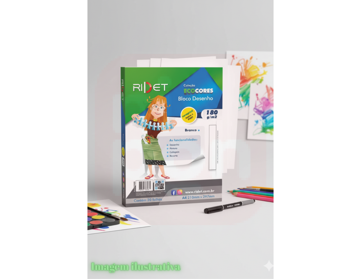 2. Bloco Desenho Ecocores A4 180gr 21x29,7 Cm 20fls Ridet